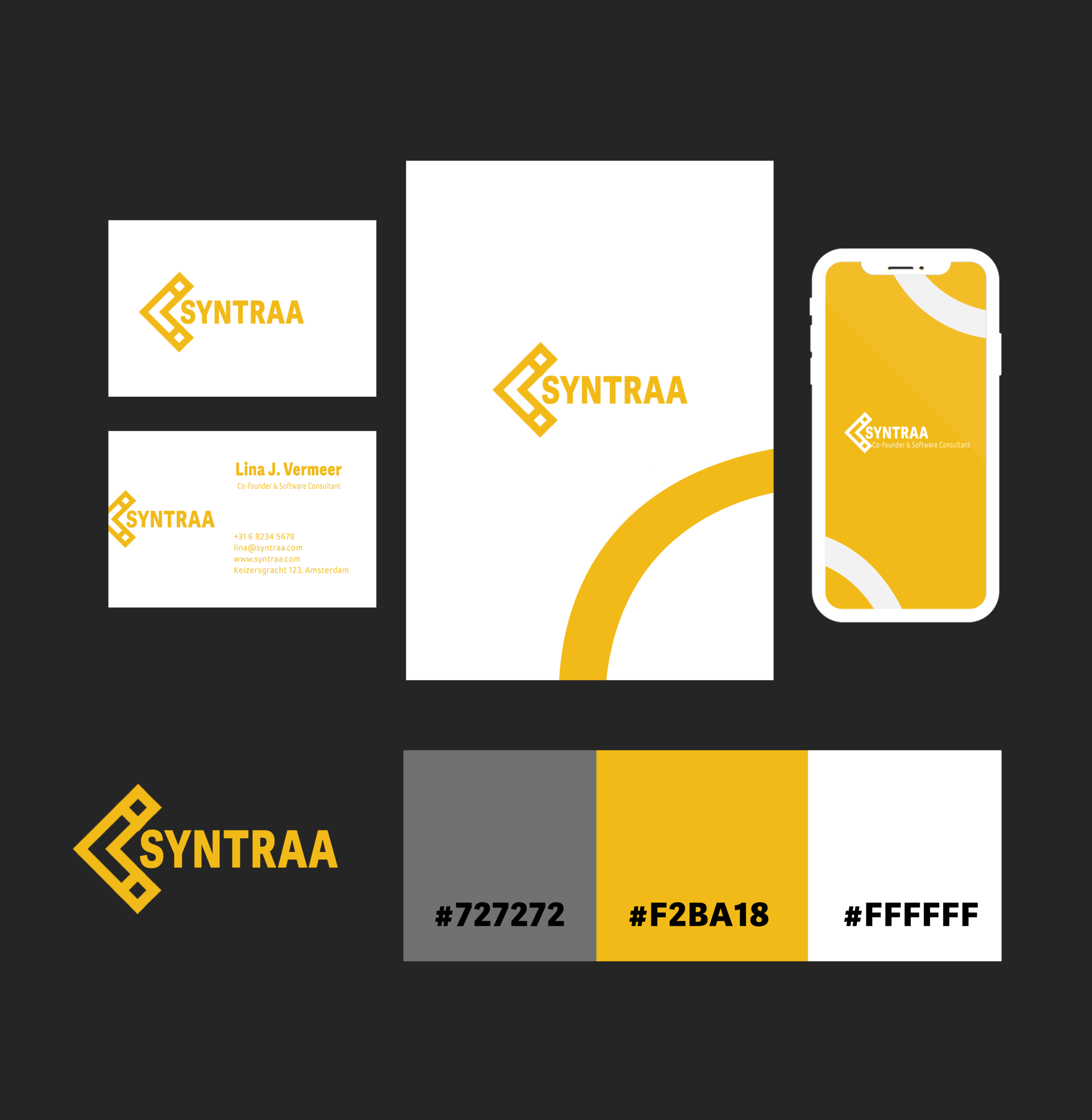 concepten → finale, kleurpalet, typografie, mini brand sheet.